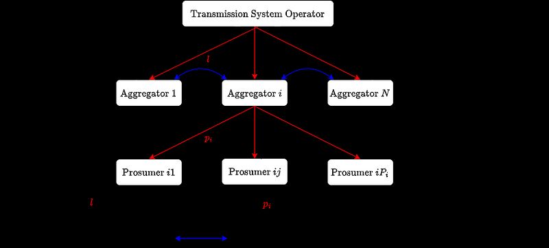 In this project, we propose a hierarchical energy management scheme for aggregating Distributed Energy Resources (DERs) for grid flexibility services. To prevent a direct participation of numerous prosumers in the wholesale electricity market, aggregators, as self-interest agents in our scheme, incentivize prosumers to provide flexibility. We firstly model the economic behaviour of aggregators and prosumers as a noncooperative aggregative game. Then a fully distributed algorithm in discrete time is proposed to find the corresponding Nash Equilibrium (NE). In this algorithm, each aggregator only needs to exchange its estimate of the aggregated flexibility and an auxiliary variable with its neighbours. Convergence of the algorithm is proven using operator theoretic techniques.